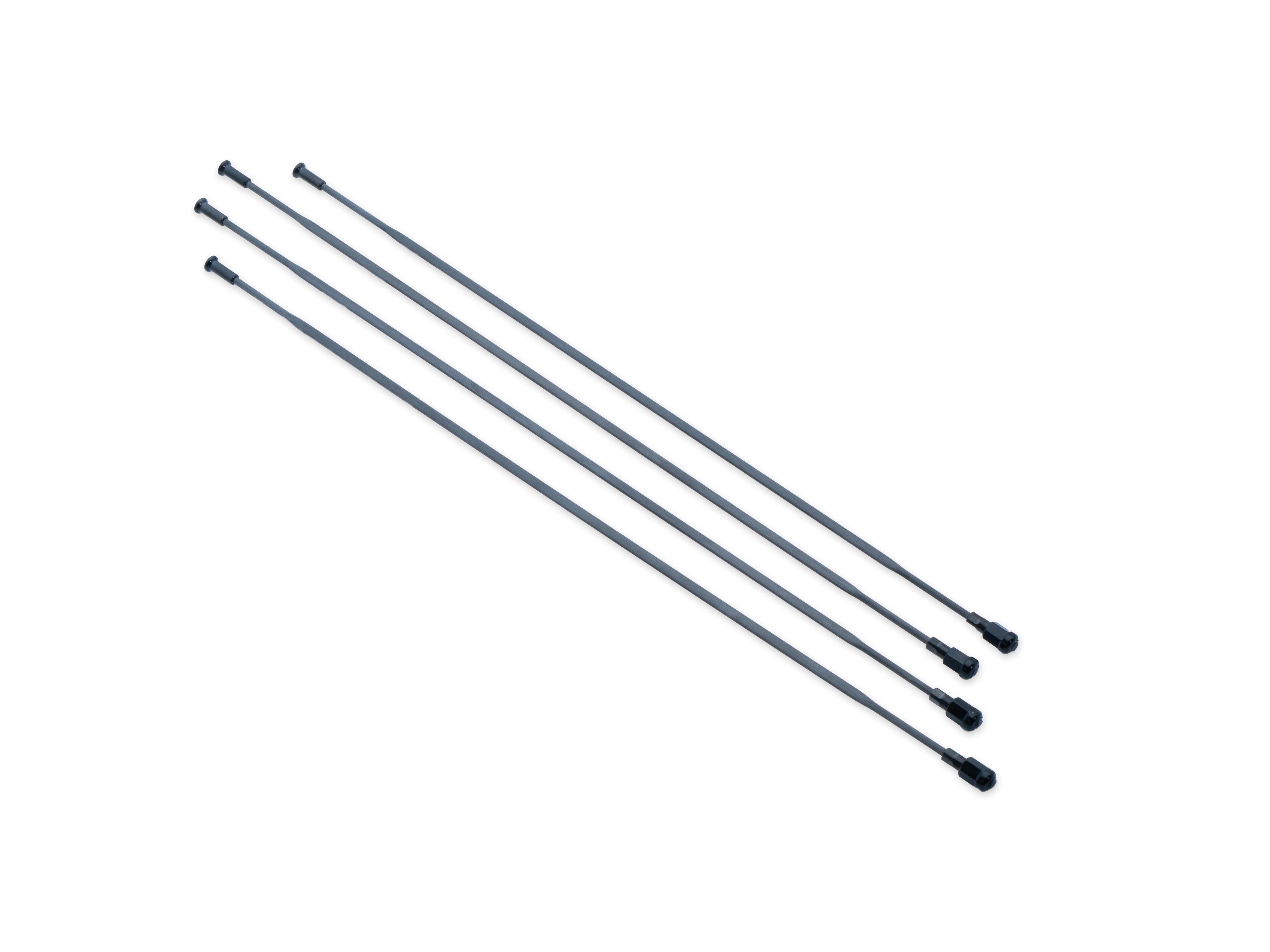This kit includes carbon bladed spoke for front wheel, non-drive side, 291.7mm (1 pce), carbon bladed spoke for front wheel, drive side, 271mm (1 pce), carbon bladed spoke for rear wheel, non-drive side, 286.5mm (1 pce), carbon bladed spoke for rear wheel, drive side, 285.5mm (1 pce), Spoke Nipples M4.0*0.5, diameter 6.5mm, length 8.7mm, AL7075-T6 (4 pcs)